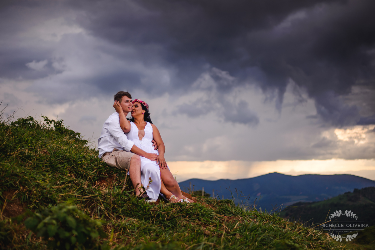 Amanda me procurou com 1 ano para a data de seu casamento, achávamos que iria demorar a passar mas 1 ano passou rápido e a realização desse ensaio foi linda, uma surpresa como disse. Chegamos a rampa e já começava a chover, logo parou mas o tempo ainda estava com muitos nevoeiros, aproveitamos a paisagem linda que Deus nos havia proporcionado e logo quase no final , um pôr do sol maravilhoso!